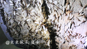 你看到的分飞出来的白蚁有翅成虫,只是整个白蚁群体的极少部分,你看到的只是冰山一角。看看下面图片中蚁巢内部的白蚁有多少。